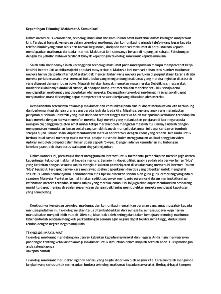 Kepentingan Teknologi Maklumat Karangan Spm Maklumatmy